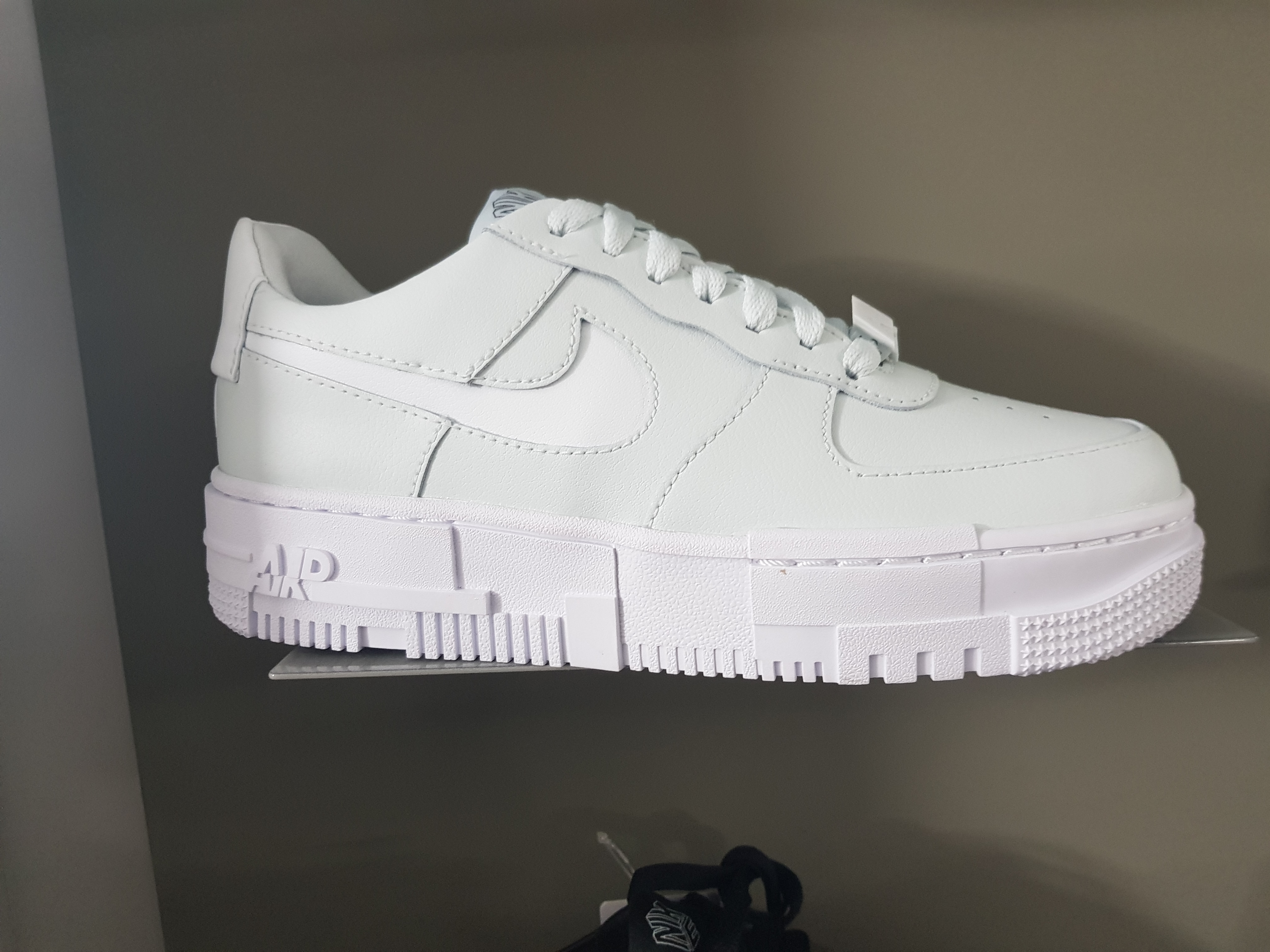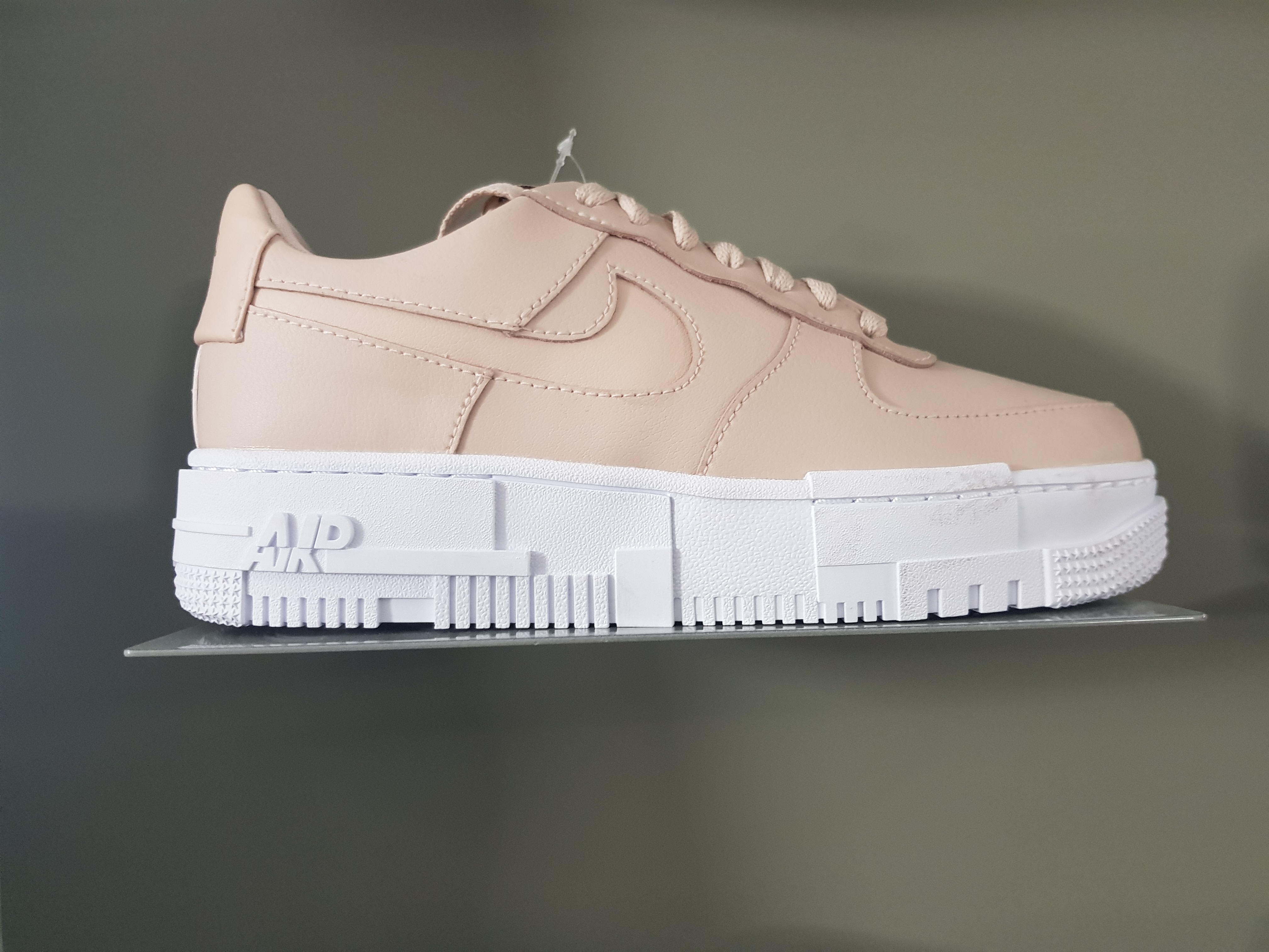 Reprenant la forme originelle de la AIR FORCE 1, la PIXEL joue beaucoup sur les reliefs et les matières. Avec sa semelle ultra travaillée, et son swoosh incrusté dans le cuir de la sneakers, elle offre une vraie différence par rapport à la AIR FORCE 1 « originale ».