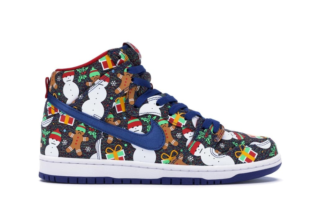 La mode des pulls de Noël moches revient depuis quelques années, mais cette Nike Dunk de 2017, on espère que elle restera dans les oubliettes. La sneaker culture n’a pas besoin de la voir revenir.