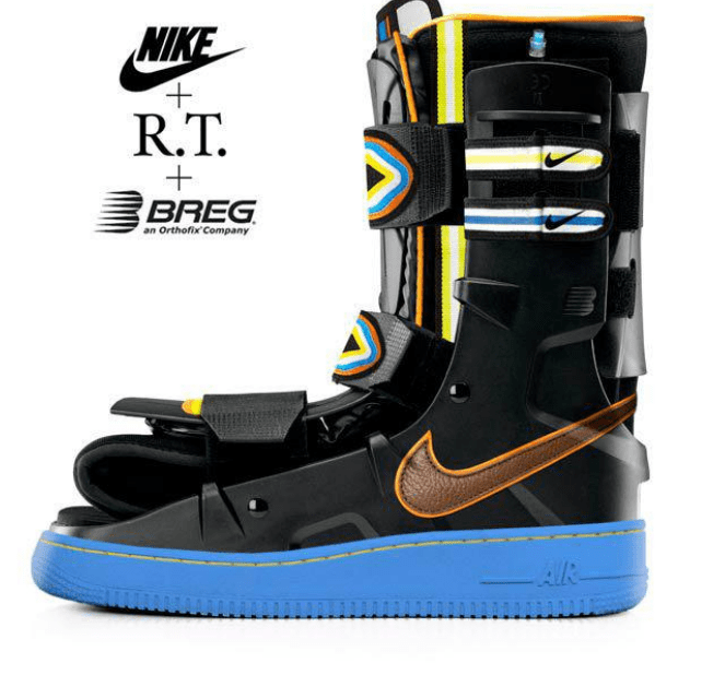 Alors là on est sur un niveau complètement fou de la collab. On mélange Nike et ses Air Force, avec de la protection pour les gens blessés au pied.