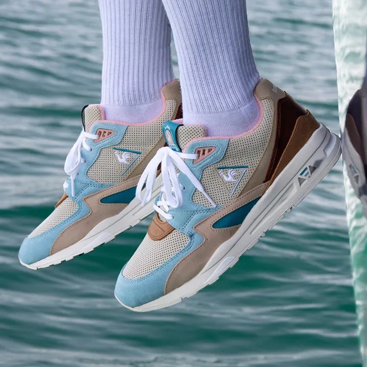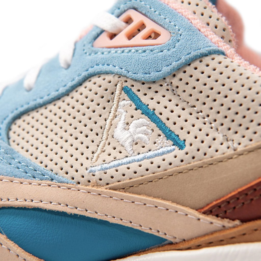 Comme souvent pour les collaborations chez Le Coq Sportif, les matériaux utilisés sont tous premium. On retrouve du daim perforé, du cuir lisse et du coton naturel, de quoi assurer un mélange de matières qui rend la paire absolument irrésistible.