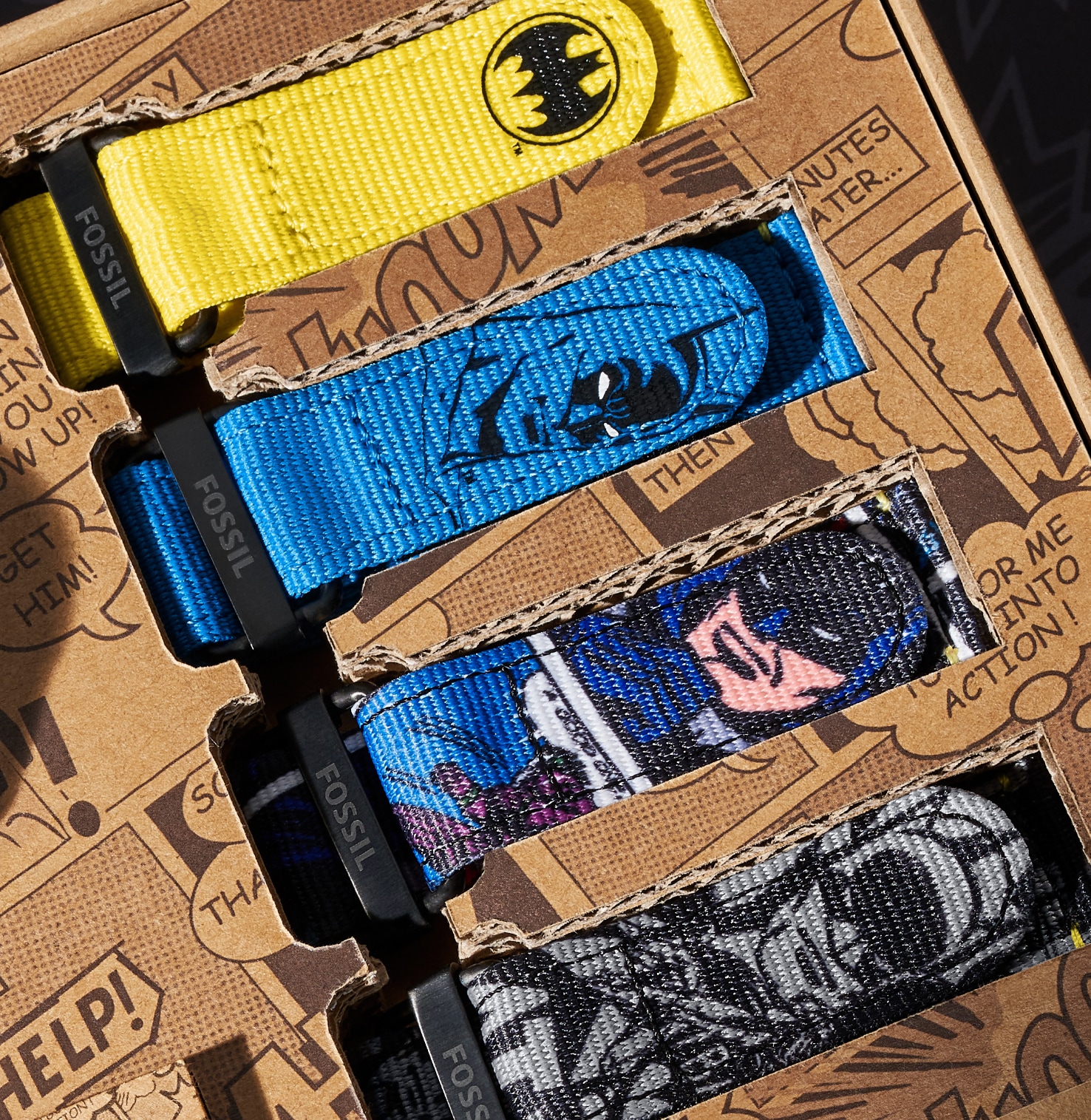 Et Fossil ne s’est pas contenté de travailler sur les montres, la marque a également créé des accessoires pour créer une vraie collection centrée sur l’univers de Batman.