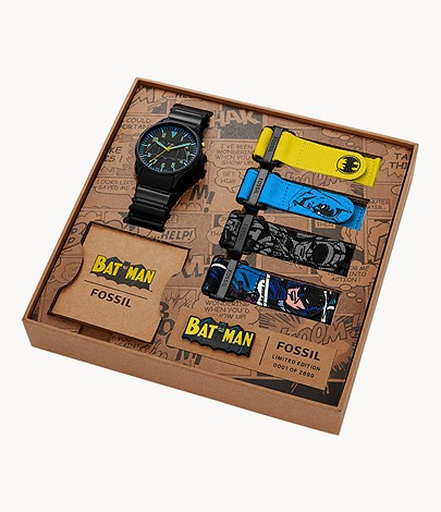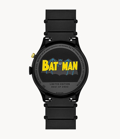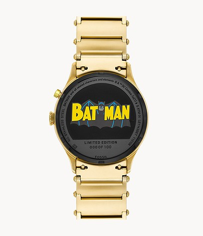 La montre Batman Fossil se décline en deux coloris, le doré, limité à seulement 100 exemplaires, et le noir, disponible à 2890 unités.