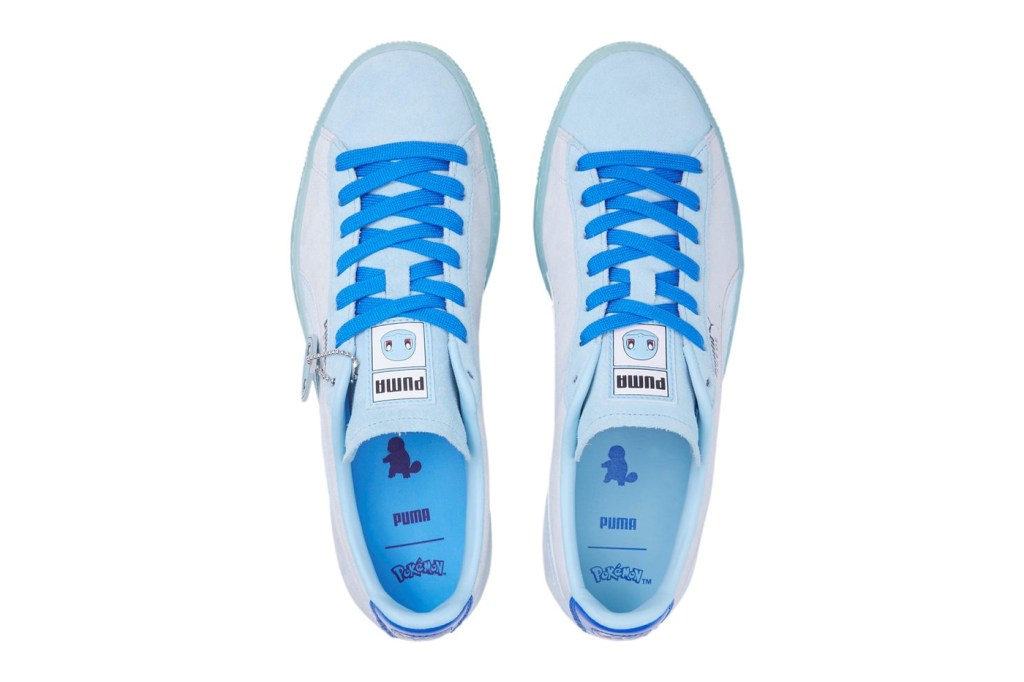 Carapuce, le Pokemon aquatique, à le luxe de voir sa collaboration porter sur la plus connue des sneakers Puma : la Puma Suede. Comme pour toutes les paires de la collaboration, on retrouve l’élément du Pokemon au talon du modèle. L’eau, donc, pour Carapuce, l’électricité pour Pikachu, le feu pour Salameche et l’herbe pour Bulbizarre.