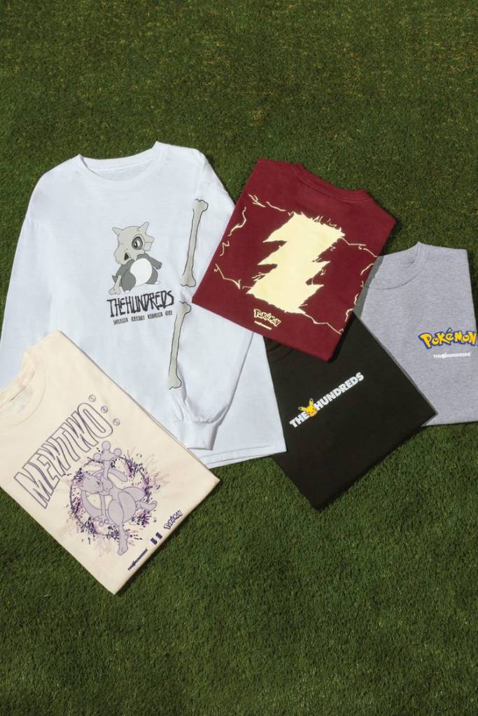 Les autres Pokemon qui sont visibles sur les premières images de cette collaboration The Hundreds X Pokemon sont Mewtwo et Ossatueur, eux aussi issus du premier jeu Pokemon sorti sur Game Boy à l’époque. On peut aussi retrouver la casquette de Sacha, le héros que l’on incarne dans le jeu, et que l’on suit dans le dessin animé.