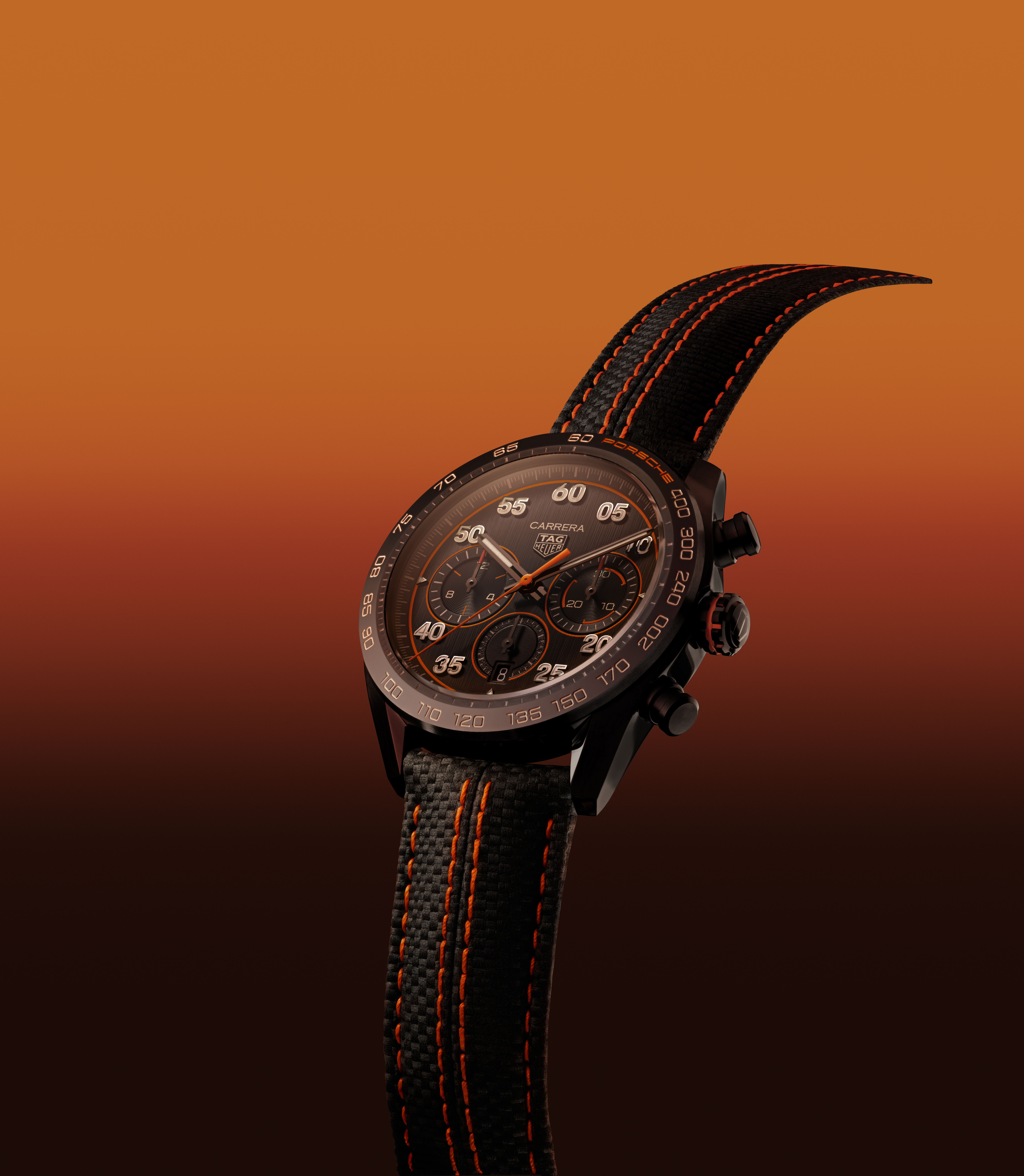 Le noir est une autre couleur clé de cette édition spéciale. Il souligne élégamment le contraste offert par la luminosité de l’orange. Pour créer ce design harmonieux aux touches de couleur raffinées, les designers de TAG Heuer ont utilisé différentes textures et finitions de noir.
