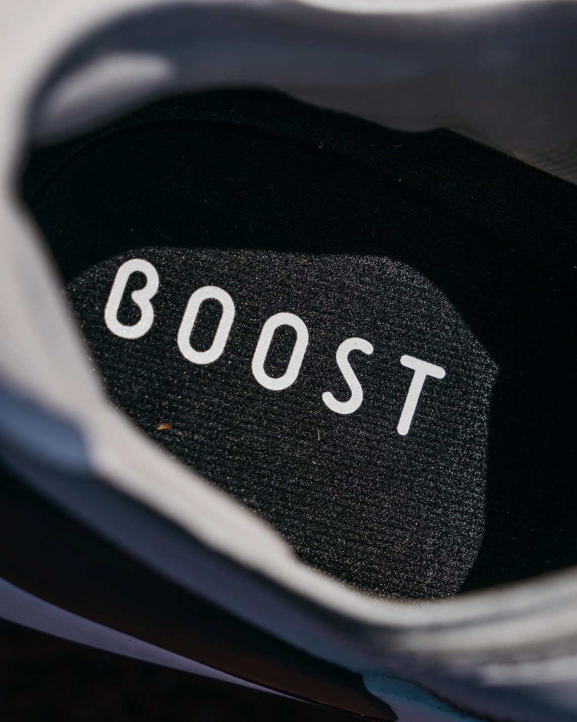 Ce n’est pas indiqué dans le nom du modèle, ce qui semble pourtant indispensable (c’est le cas pour les superboost, les Air Max, les Air Force, les Pump, etc). Même si le client ne connait pas forcément la technologie, il reconnait au moins le nom, ce qui peut attiser sa curiosité envers le modèle. Là ? A moins d’avoir de très bons yeux, ou d’avoir lu le communiqué de presse, il y a de très grandes chances pour que vous passiez à côté de l’information. La paire ne comporte la mention « boost » que sur la semelle intérieure et la semelle extérieure. C’est dommage.
