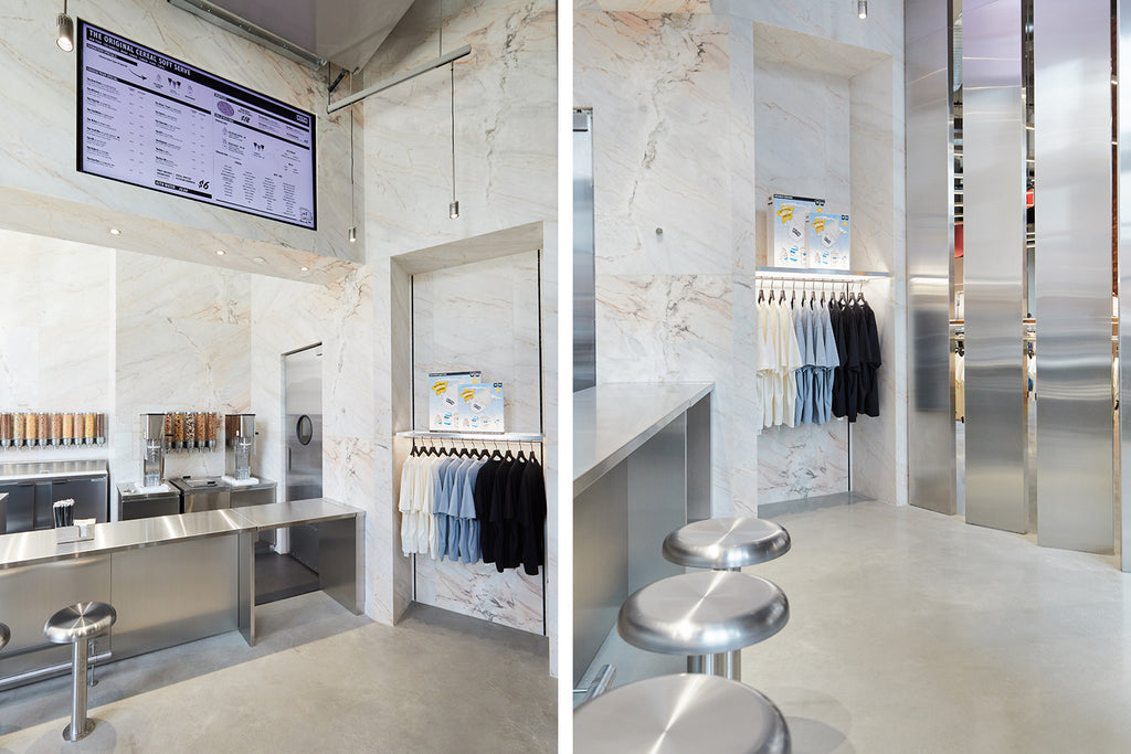 La boutique, elle, reste fidèle aux autres emplacements Kith. Un intérieur simple, minimaliste, qui proposera des collections de sneakers et de vêtements pour homme, femme et enfant.