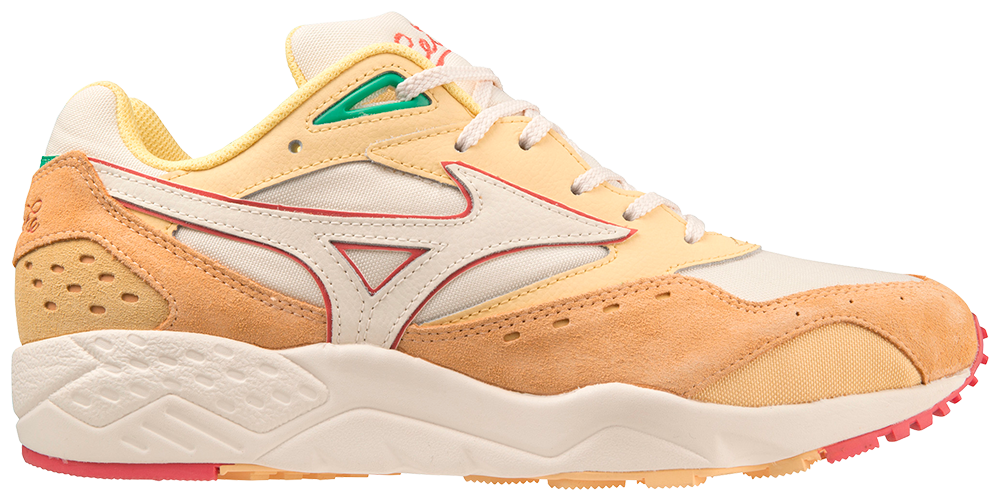 Période estivale, couleurs vives, sans être agressives, l’été est là, y compris pour les sneakers. C’est cette formule qui habille la nouvelle Mizuno Contender, nommée « Garde la Pêche », conçue en collaboration avec l’artiste Pieter Ceizer.