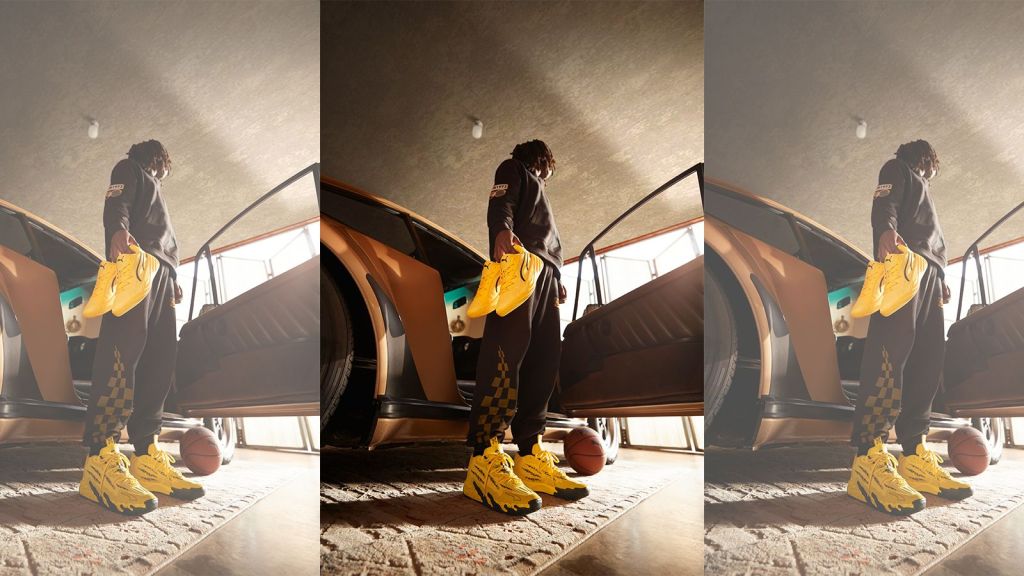 Des pistes de courses au parquet, la collection Puma X Porsche s’inspire clairement des éléments saillants de ces univers, et crée ainsi deux modèles, tous deux dédiés à la pratique du basketball, les MB.03, modèle porté par Lamelo Ball, et les All-Pro Nitro.