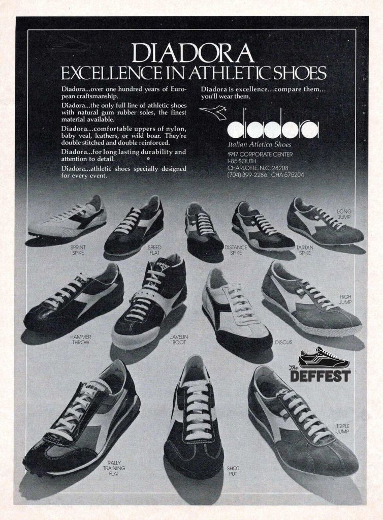 Diadora va alors signer Bjorn Borg, star du tennis, mais aussi Giuseppe Gentile, athlète Italien, et Roberto Bettega, attaquant légendaire de la Juventus. De quoi assurer de la visibilité à la marque au travers des trois sports les plus visibles à l’époque.