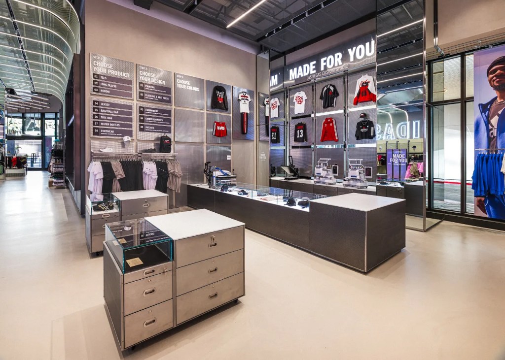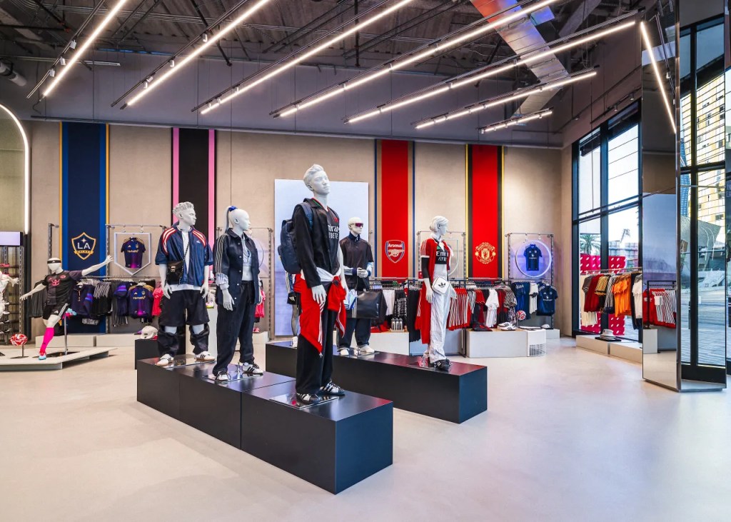 On retrouve dans ce nouvel écrin tous les univers adidas. En plus de l’incontournable partie « sport », ou l’on retrouve notamment quelques uns des plus grands clubs sponsorisés par la marque, un espace est dédié à l’univers lifestyle, faisant part belle à la gamme adidas Originals, et l’on retrouve également une zone réservée à la customisation et la personnalisation des produits.