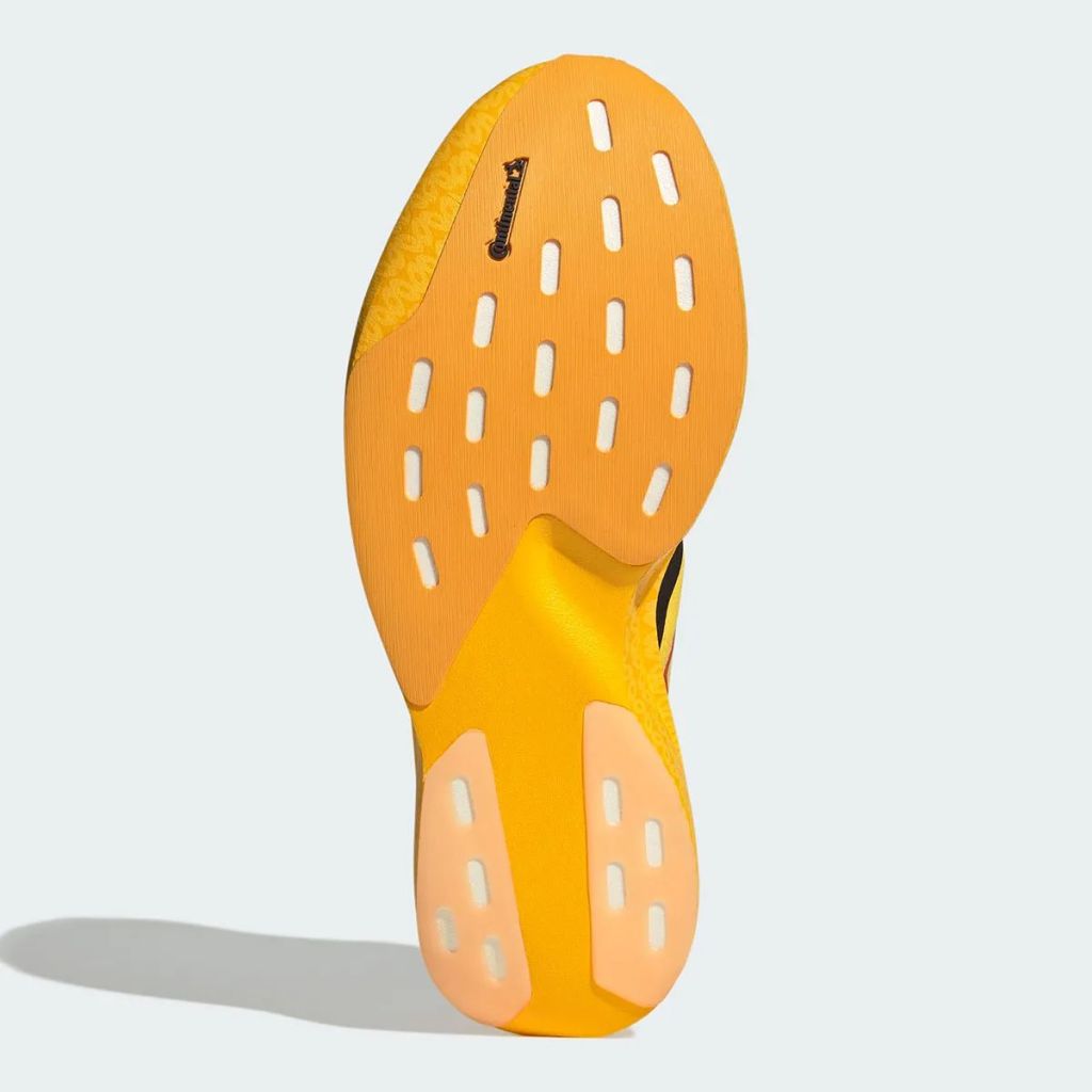 On part donc sur un modèle à forte majorité jaune, avec les trois bandes caractéristiques d’adidas en rouge, noir et vert. Rien de révolutionnaire me direz vous, mais c’est une association de couleurs qui fonctionne toujours.